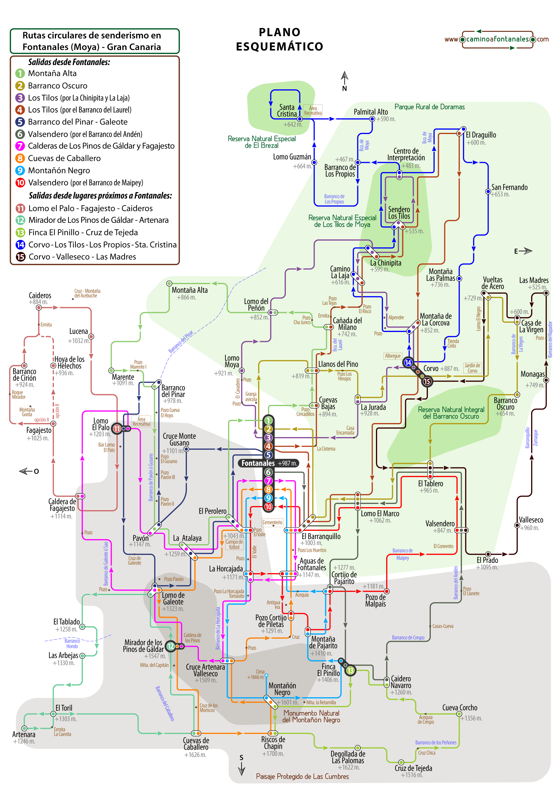Además, al tratarse de rutas circulares, podemos comenzarlas desde cualquier otro punto de paso a los que se pueda llegar en coche, como pueden ser: Montaña Alta, Corvo, Los Tilos, Pavón, Lomo El Palo, Finca El Pinillo, Valsendero, Mirador de los Pinos de Gáldar, Montañón Negro. Y por supuesto, también podemos realizar sólo una parte de la ruta si tenemos prevista la logística del transporte.