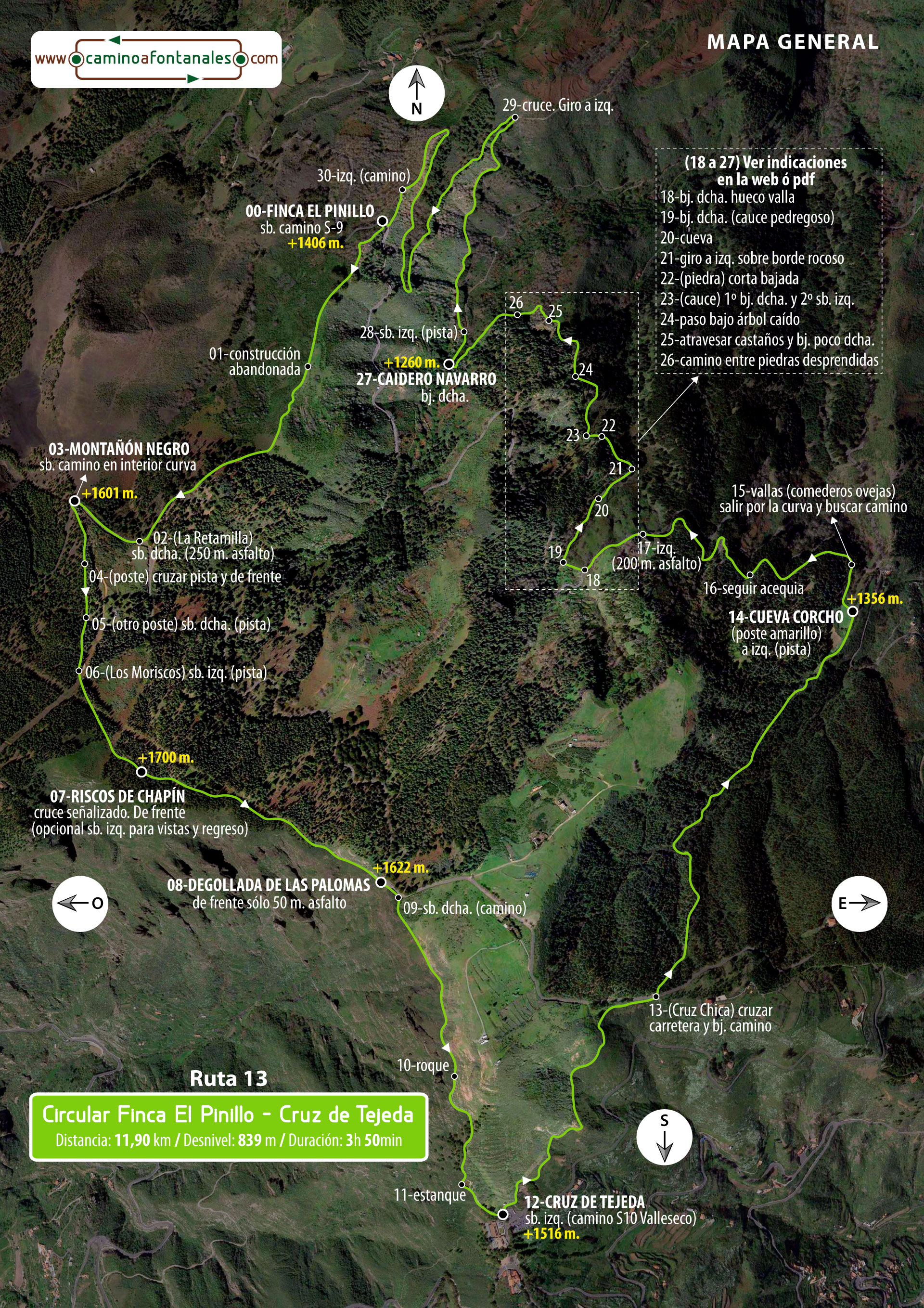 Finca El Pinillo – Montañón Negro – Riscos de Chapín – Degollada de Las Palomas – Cruz de Tejeda – Cueva Corcho – Caidero Navarro – Finca El Pinillo