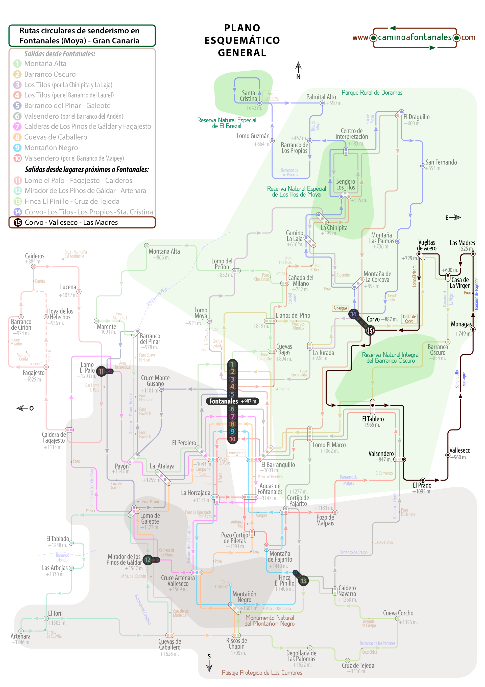 Corvo – (Lomo El Marco) – El Tablero – Valsendero – El Prado – Valleseco – Monagas – Las Madres – Casa de La Virgen – Vueltas de Acero – Corvo